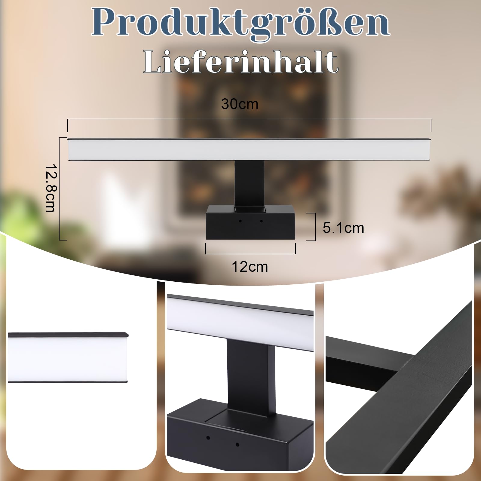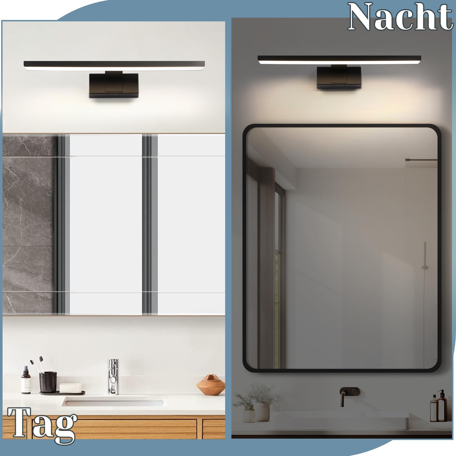 The straight-line design and black high-gloss finish give this energy-efficient LED mirror lamp a modern aesthetic. It delivers uniform lighting to beautifully illuminate mirrors, making it suitable for most bathrooms and damp environments (e.g., bathrooms, garages, hallways, kitchens, basements).