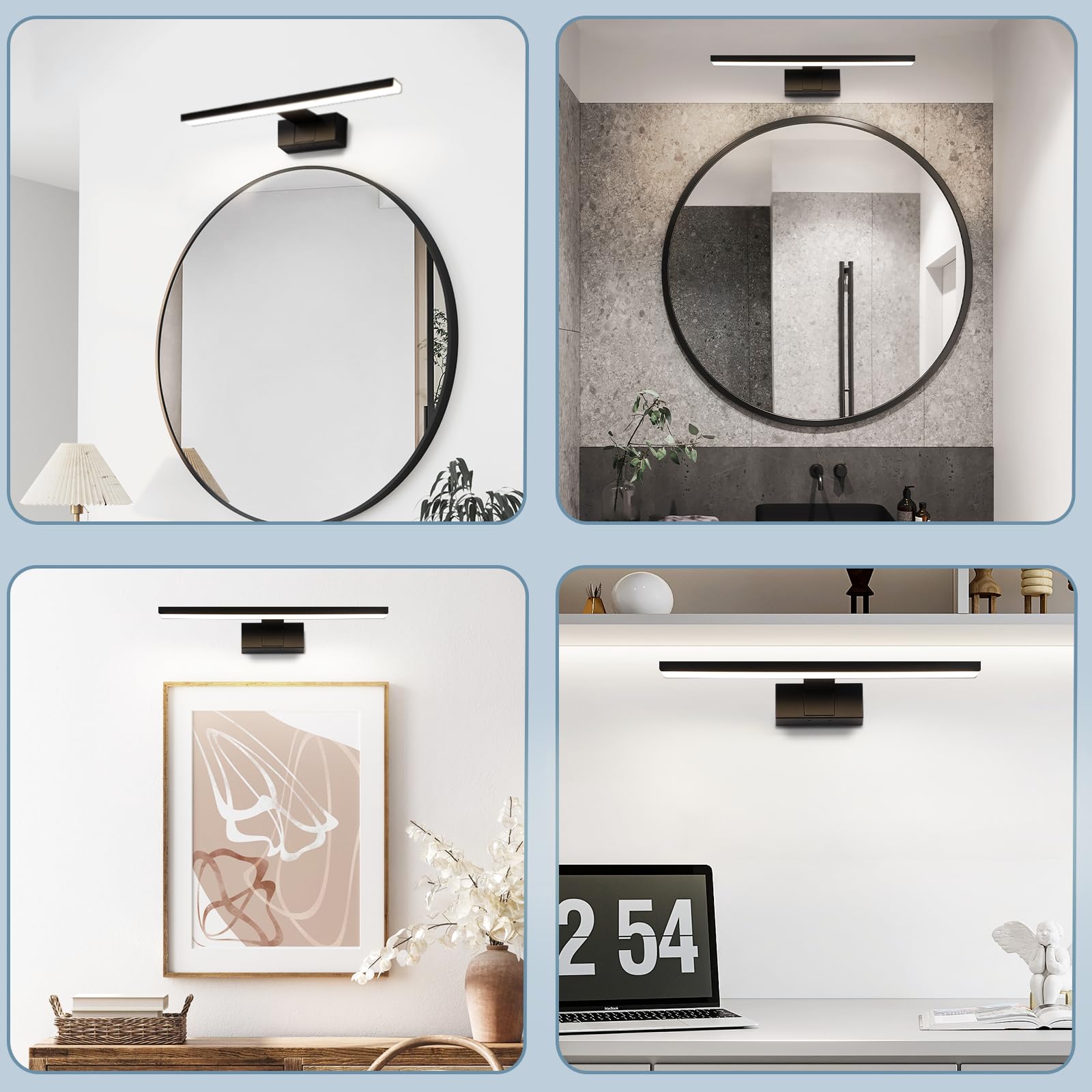 This LED bathroom mirror light offers two simple installation methods. You can directly mount the fixture on the wall or use it as a standard wall light. This design ensures compatibility with all mirror shapes and types.