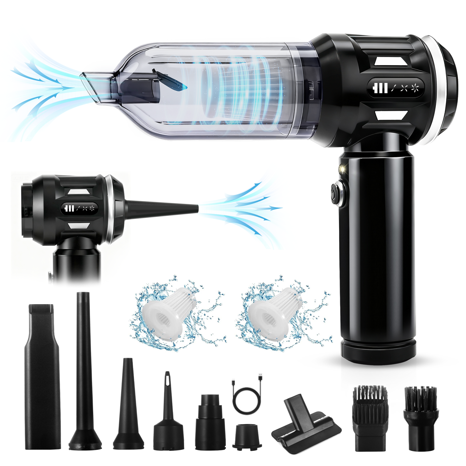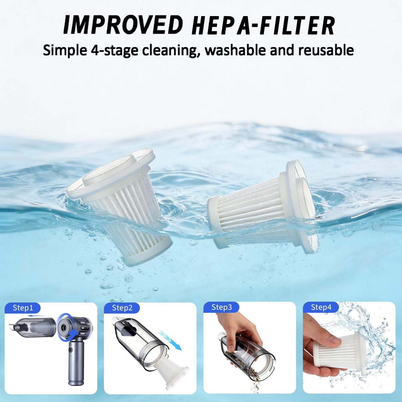 Portable cordless vacuum cleaner, high-power mini vacuum, multifunctional, suitable for cars, homes, offices, camping, and cleaning dust from computer keyboards and laptops.