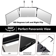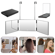 360度旋转镜,三面带挂钩化妆镜,便携式美容镜,高度可调折叠设计,剃须放大镜,适用于理发、剃须、化妆及发型设计
