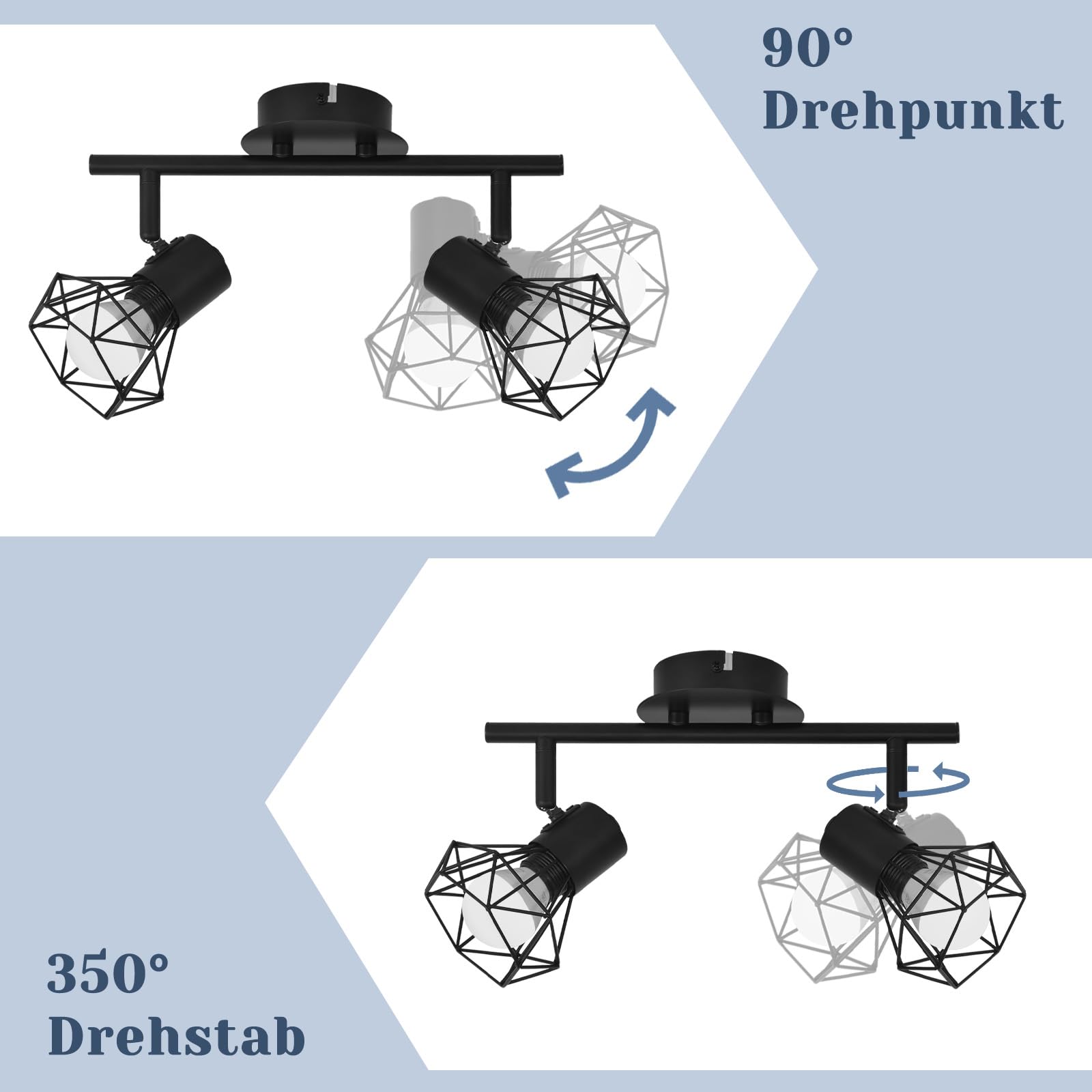 Diese elegante Deckenlampen flur kann um 350° nach links und rechts und um 90° nach oben und unten gedreht werden. Diese LED Deckenleuchte 2 flammig kann leicht die Beleuchtungsbedürfnisse Ihres Raumes erfüllen, indem sie in verschiedene Richtungen zeigt, ideal für Esszimmer und Schlafzimmerleuchten.