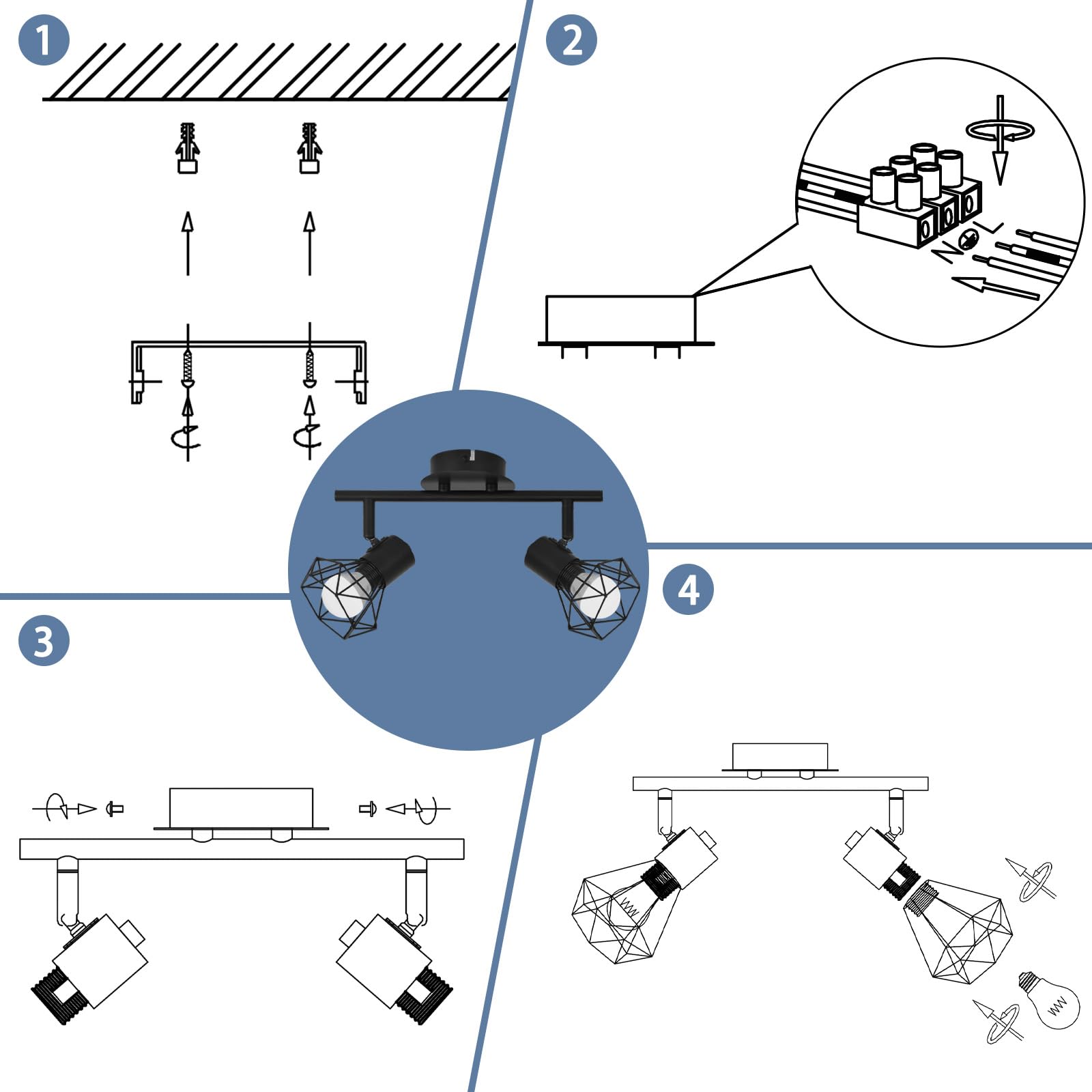 Diese Deckenleuchte LED küche kann auf zwei Arten installiert werden, entweder als Deckenlampe 2 flammig an der Wand oder als Deckenspots im Wohnzimmer, direkt an den Stromkreis angeschlossen, sehr einfach und bequem, auch für unerfahrene Installateure. Wenn Sie irgendwelche Probleme nach Erhalt der Ware haben, wenden Sie sich bitte rechtzeitig an unseren Kundendienst.