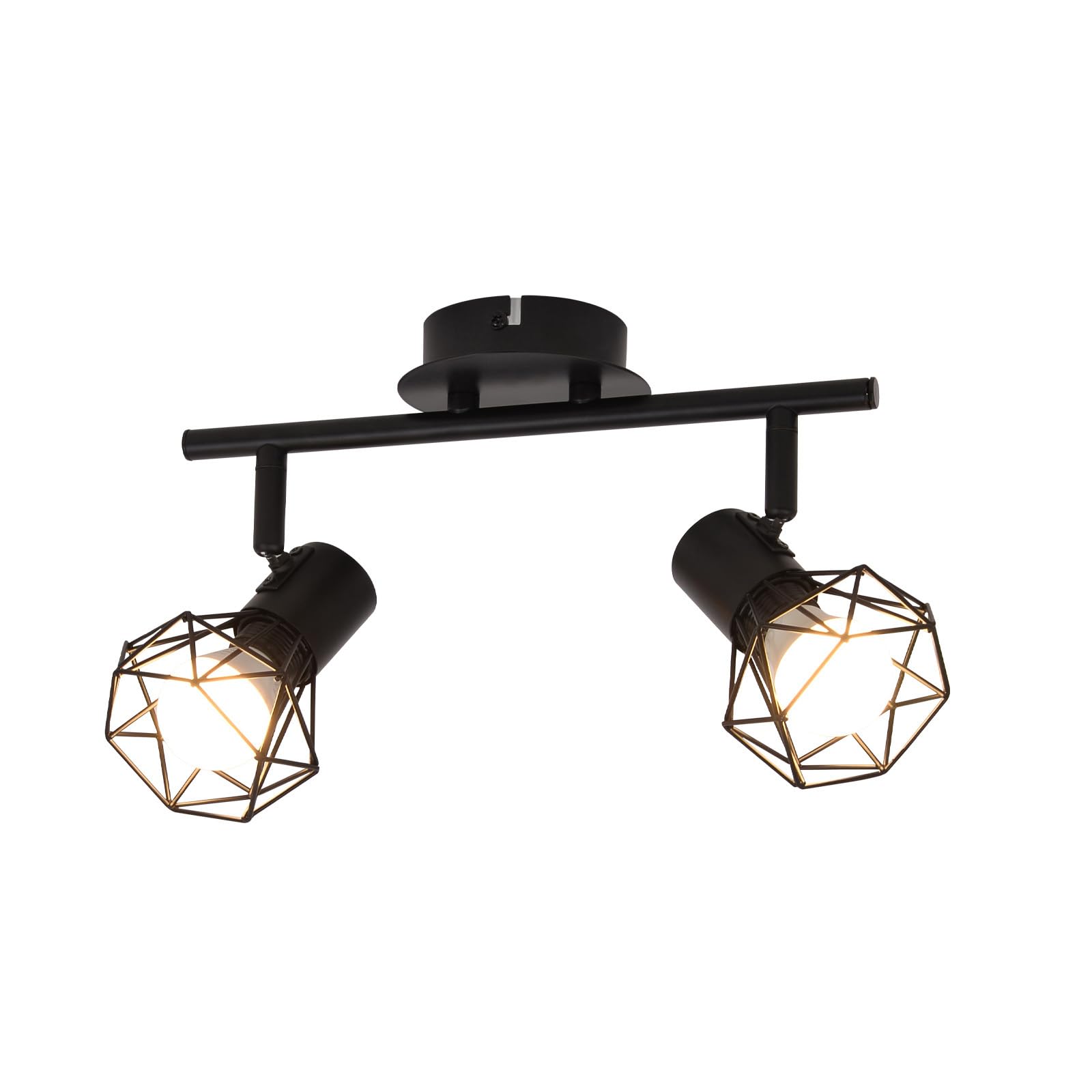 Deckenstrahler 2 Flammig Vintage Denckenspots - Schwarz Denckenlampe E14 Verstellbare 350°Industrial Retro Deckenleuchte für Flur Wohnzimmer Schlafzimmer Küche Esszimmer