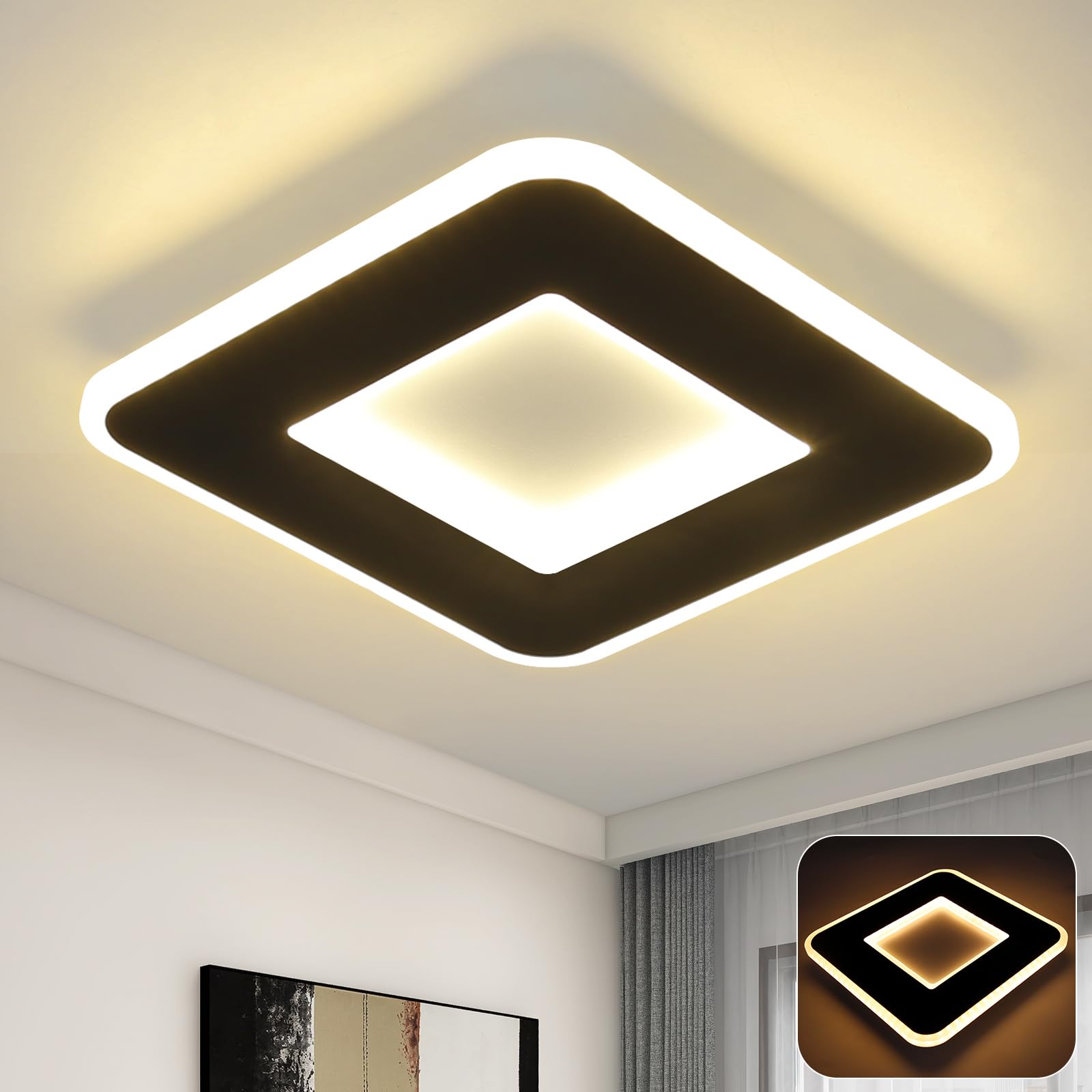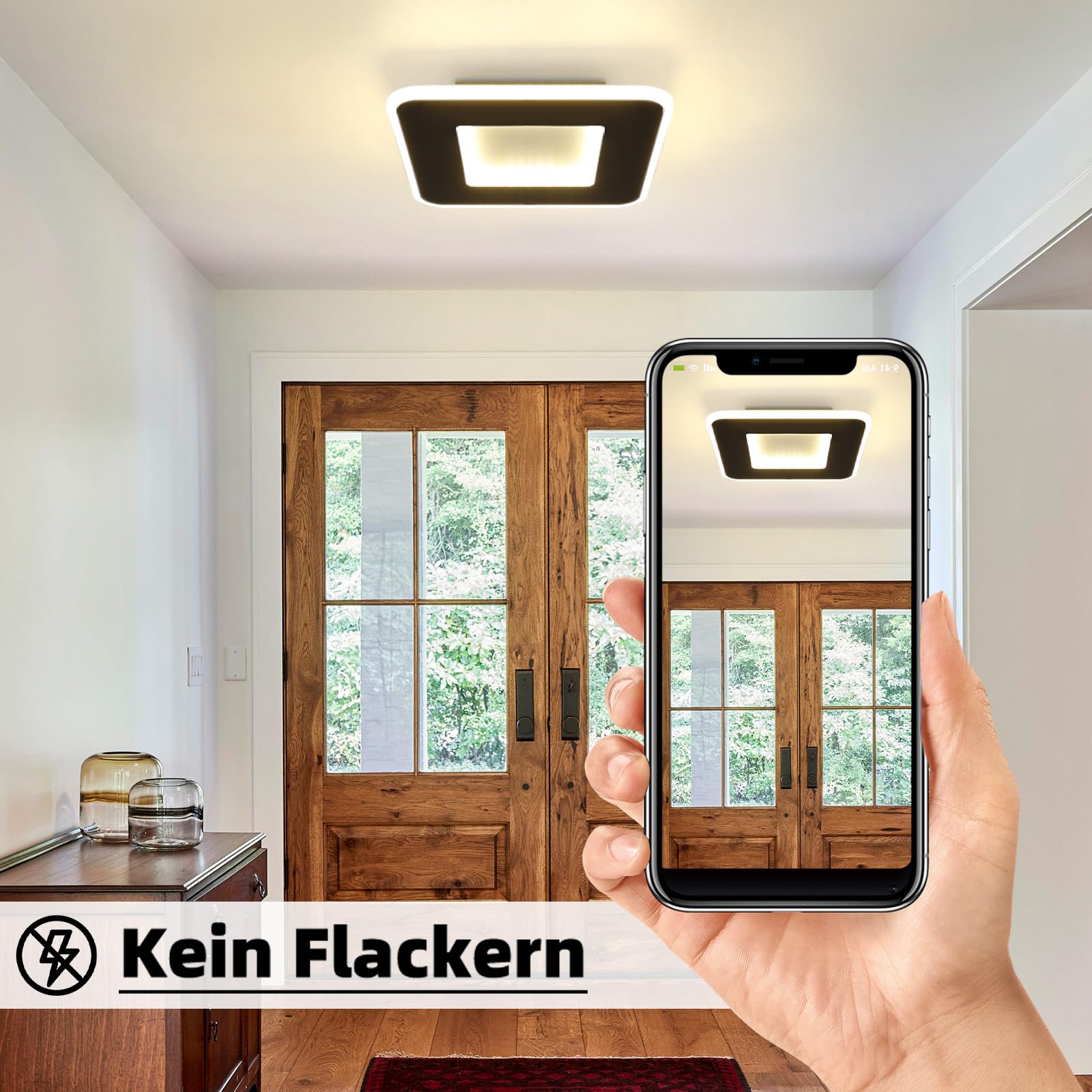 Deckenlampe Schlafzimmer LED Küchenlampe Deckenleuchte - deckenlampe flur Schwarz Warmweiß 24cm Modern Design Schlafzimmerlampe 23W Eckig Flur Deckenbeleuchtung für Wohnzimmer