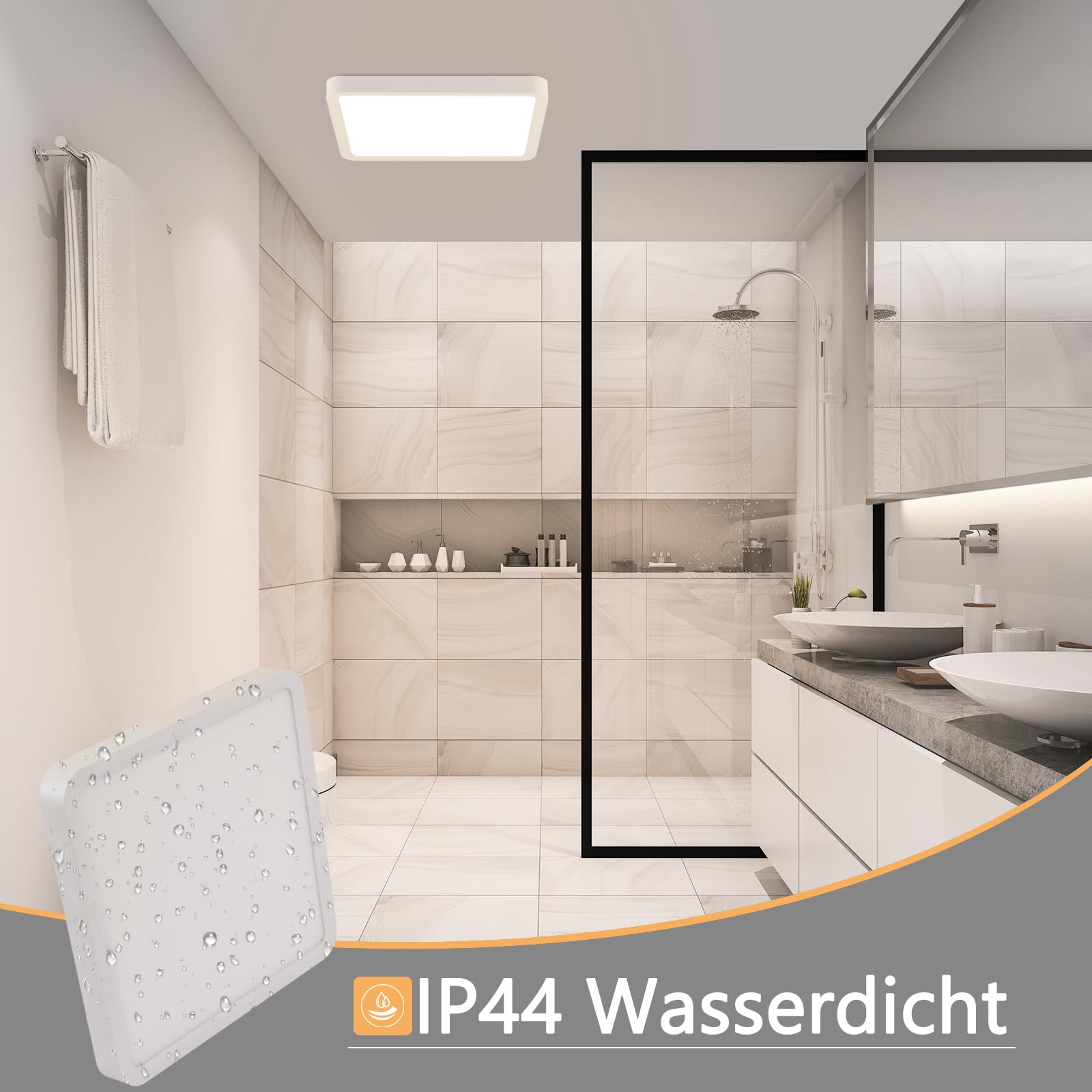 This flat ceiling light features an IP44 waterproof rating and a sealed, integrated design, eliminating the hassle of cleaning dust or insects from the lampshade. It is ideal for installation in humid environments.