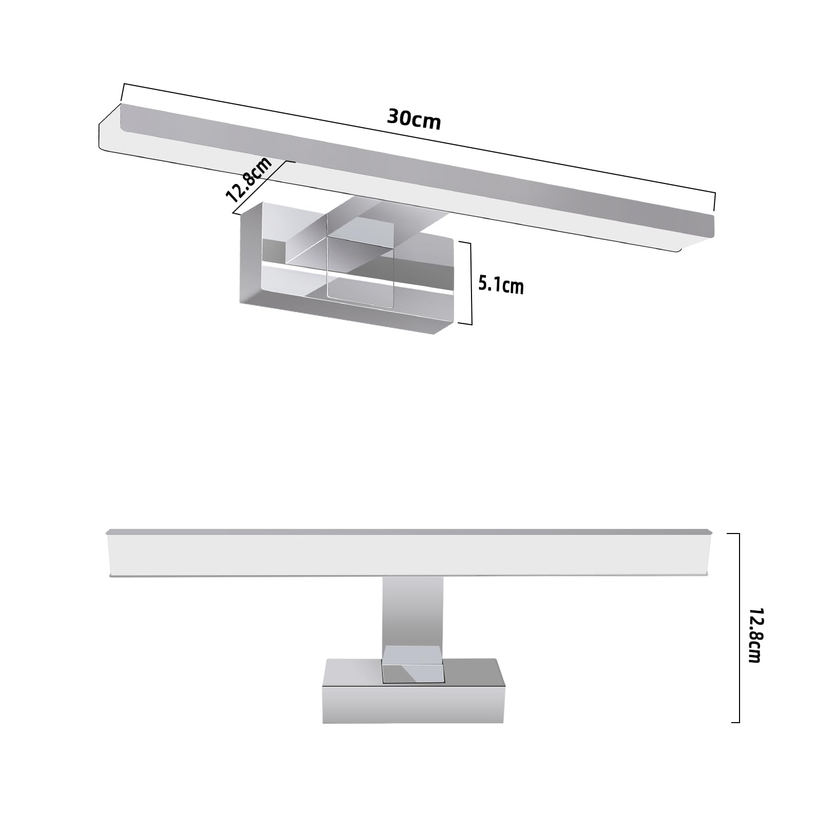 广泛适用: 简约直线造型与镀铬高光表面赋予镜灯现代感。白色塑料外壳确保光线均匀扩散,适合浴室、车库、走廊、厨房、地下室等潮湿或功能空间
