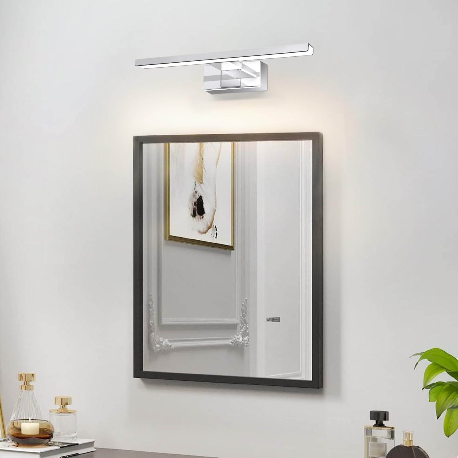 Eye Protection: This LED mirror light is ideal for mirror illumination. Its flicker-free and glare-free design makes it a classic bathroom light that evenly illuminates the mirror with neutral white light, showcasing natural skin tones