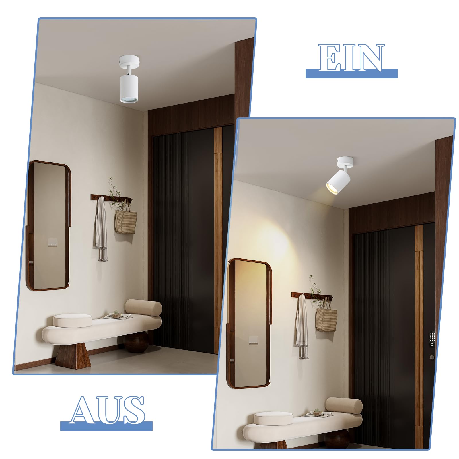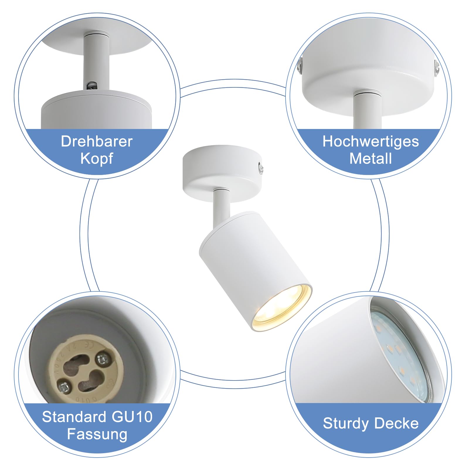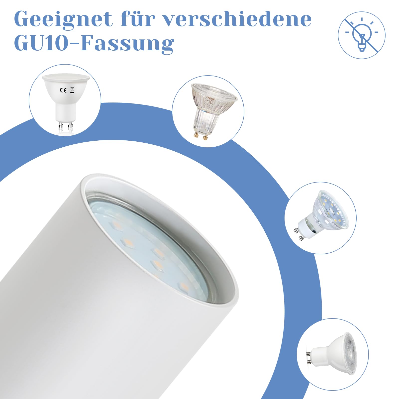 【Austauschbare Lichtquelle】 Mit dem Deckenstrahler können Sie flexibel verschiedene GU10-Leuchtmittel austauschen und unterstützen eine maximale Leistung von 25 W. Sie können je nach Bedarf warmeweiß, kaltlweiß oder RGB-GU10-Lampenbasen auswählen