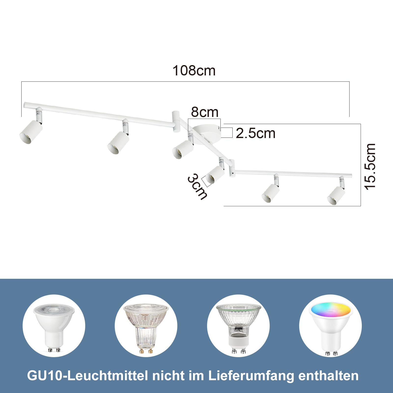 【GU10 Port】 Kompatibel lampen deckenlampen mit GU10 Leuchtmittel, bietet mehr Auswahlmöglichkeiten. Ob LED oder traditionelle Leuchtmittel, es kann leicht angepasst werden, um individuelle Beleuchtungsbedürfnisse zu erfüllen. Beachten Sie, dass die Lichtquelle nicht im Lieferumfang enthalten ist. MAX.25W