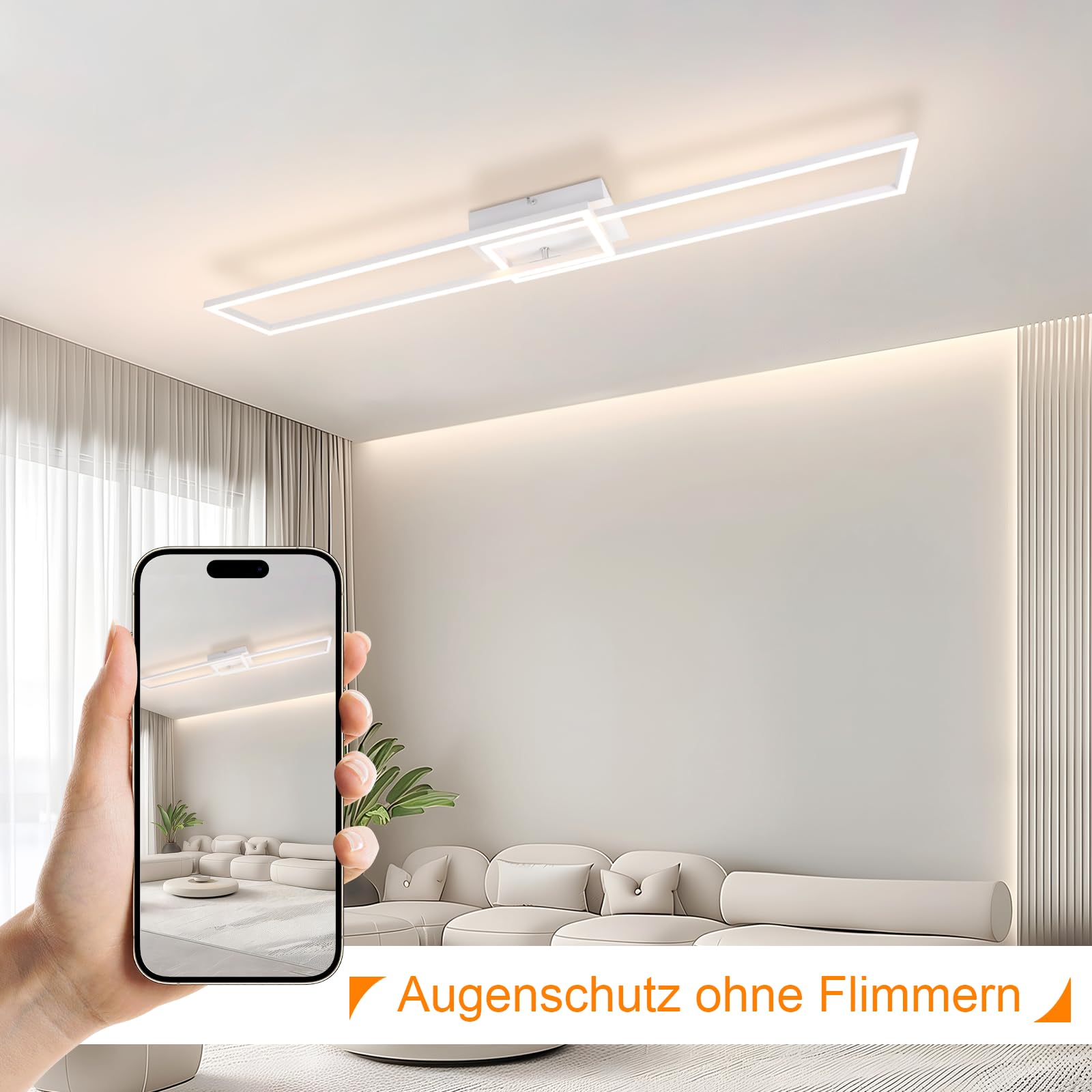 Modernes Design: Diese LED-Deckenleuchte verfügt über ein doppeltes rechteckiges Rahmendesign mit einem drehbaren Außenrahmen und einem Lichtbalken, der die Lichtabdeckung verbessert und einen modernen Touch verleiht