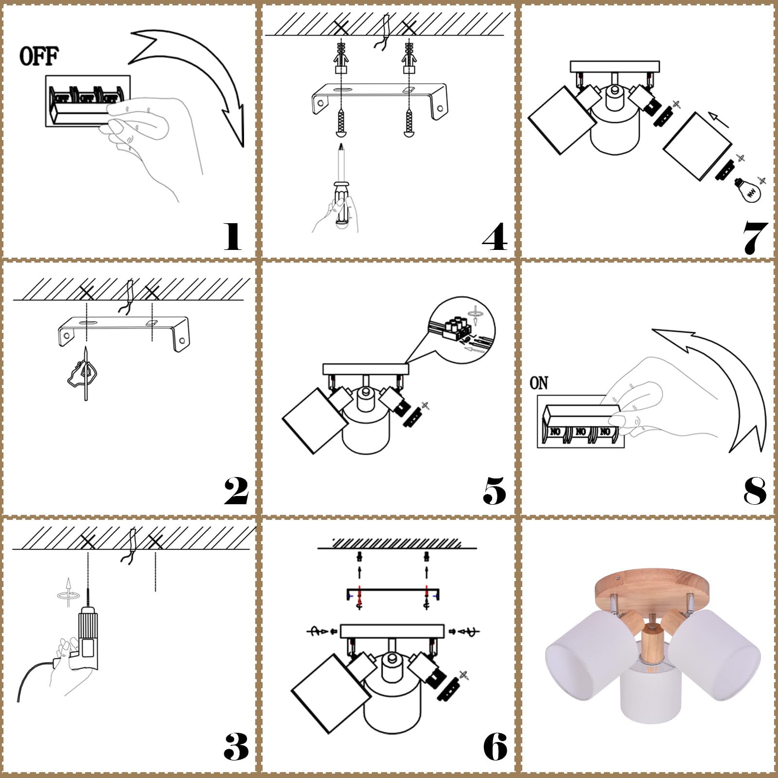 【Adjustable Rotation Angle】With a 350° rotatable head, this wooden lamp offers unrestricted flexibility in lighting direction. Perfect wall lights for highlighting specific areas or creating focused illumination, this living room ceiling lamp will effortlessly meet your lighting needs.