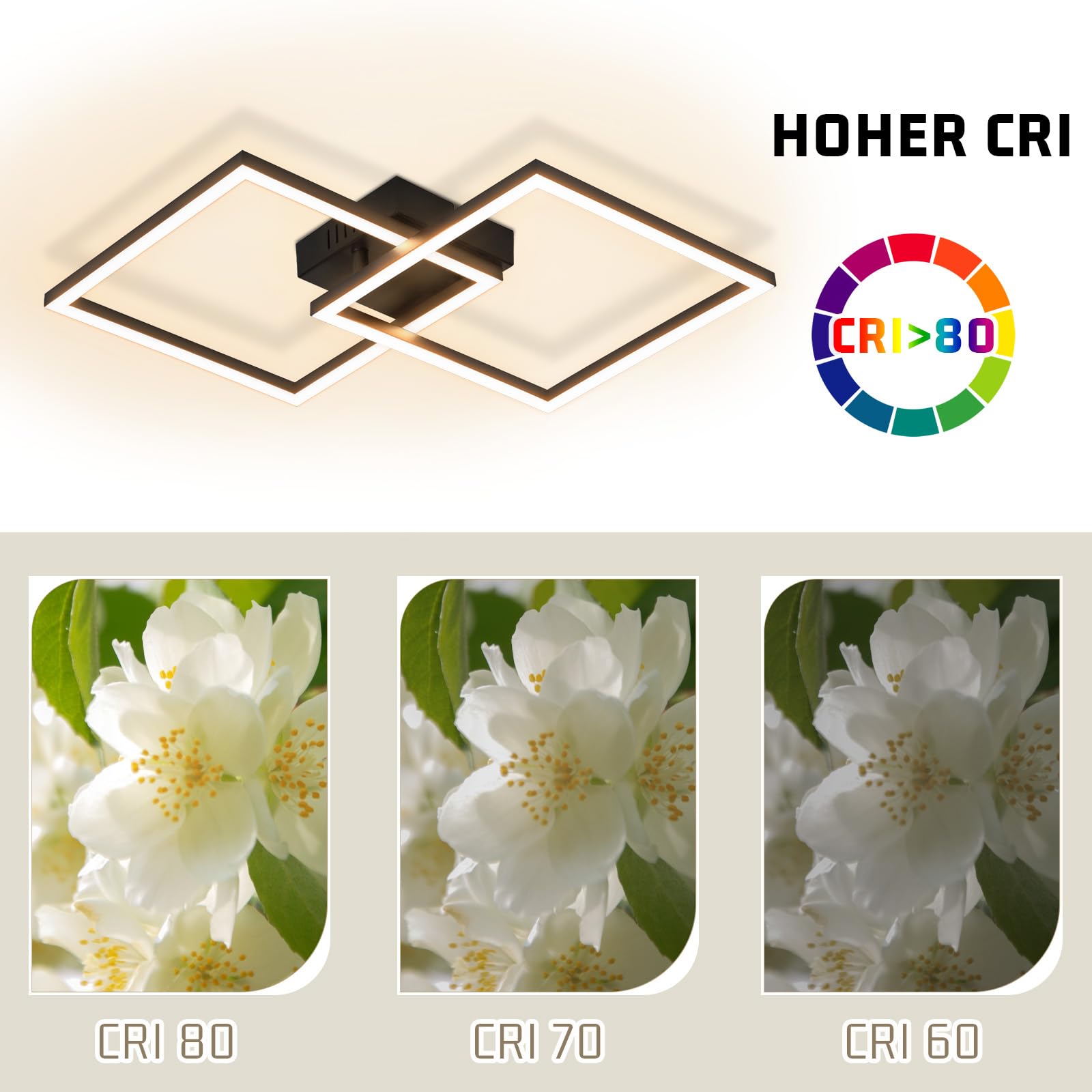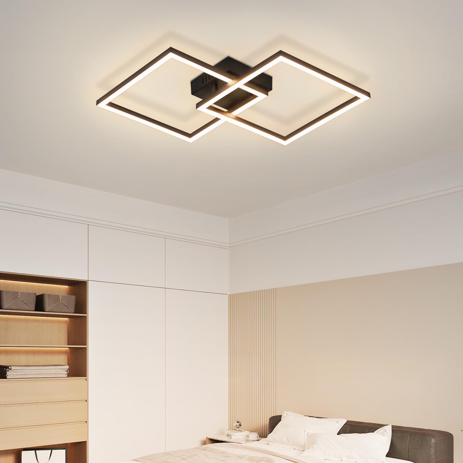Deckenlampe LED Deckenleuchte Schlafzimmer - 24W Wohnzimmerlampe Warmweiß Küchenlampe Modern Esszimmerlampe Schwarz Eckig Deckenleuchten für Wohnzimmer Kinderzimmer