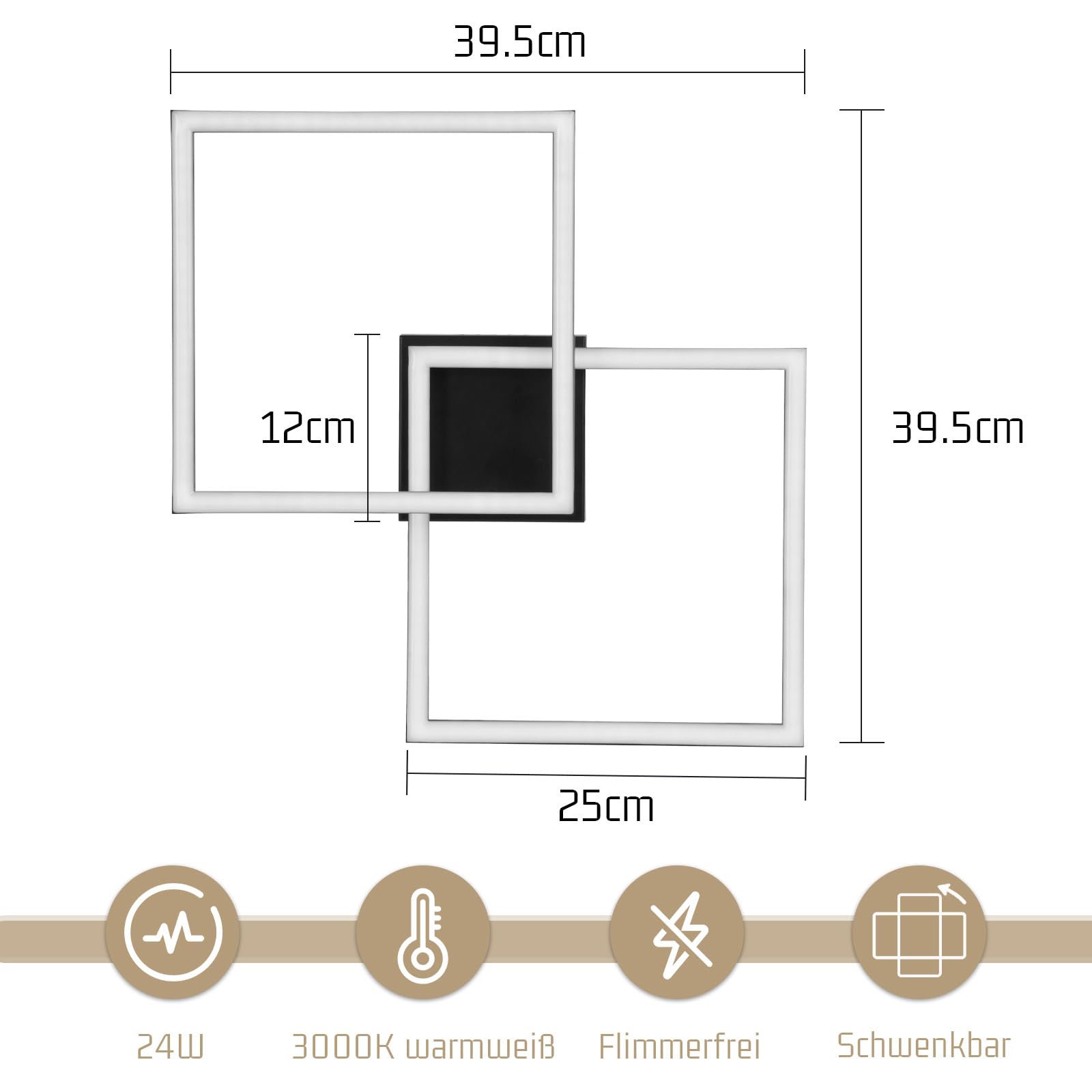 Spezifikationen: Deckenlampe schwarz Größe: 39.5cm x 39.5cm x 6.7cm. Leistung: 24W. Farbtemperatur: 3000K warmweiß. Spannung: 220 - 240V. nicht dimmbar. Lebensdauer bis zu 20000 Stunden, energieeffizienter