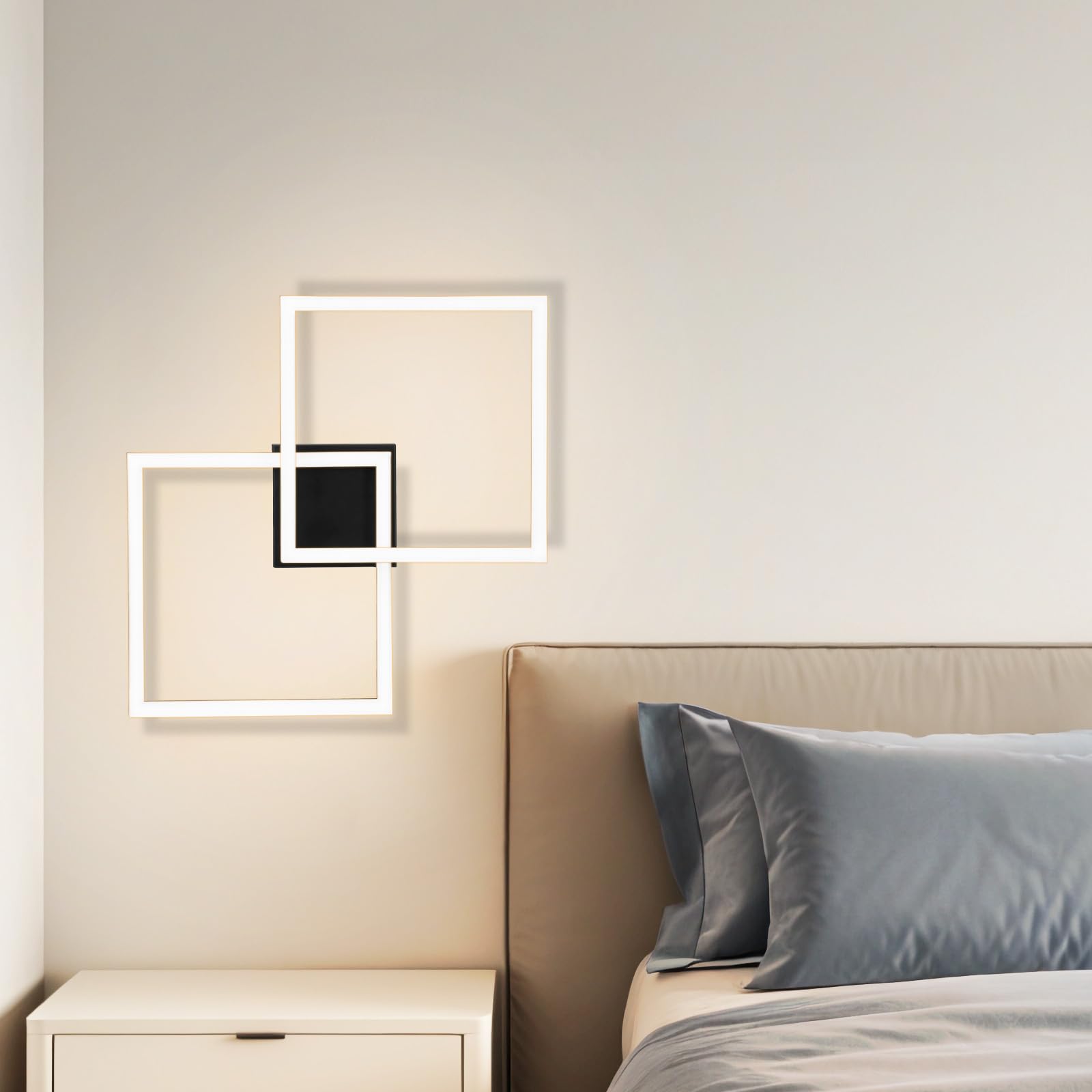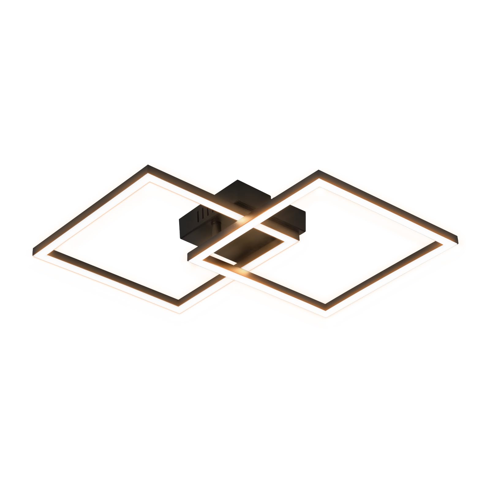 This LED ceiling light features a geometric design with two intersecting square modules, creating a modern aesthetic. One module is adjustable, allowing you to customize the lighting angle for personalized comfort and ambiance.