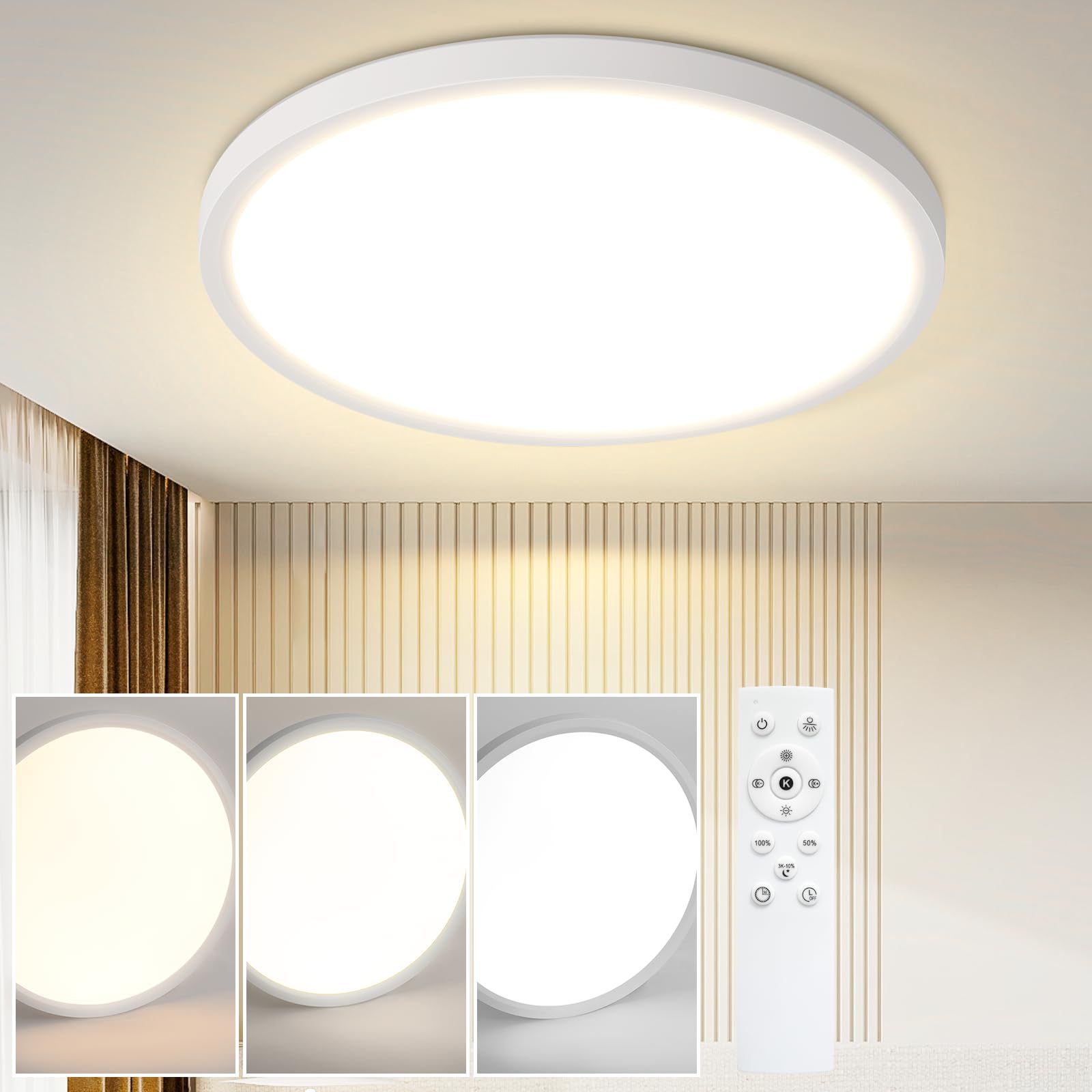 This flat ceiling light is IP44 waterproof and features a closed, integrated design, saving you the hassle of cleaning the lampshade of dust and flying insects. Equipped with CCT technology, you can choose the right light color from warm white, neutral white, to cool white (3000 K to 6500 K) to suit your needs.