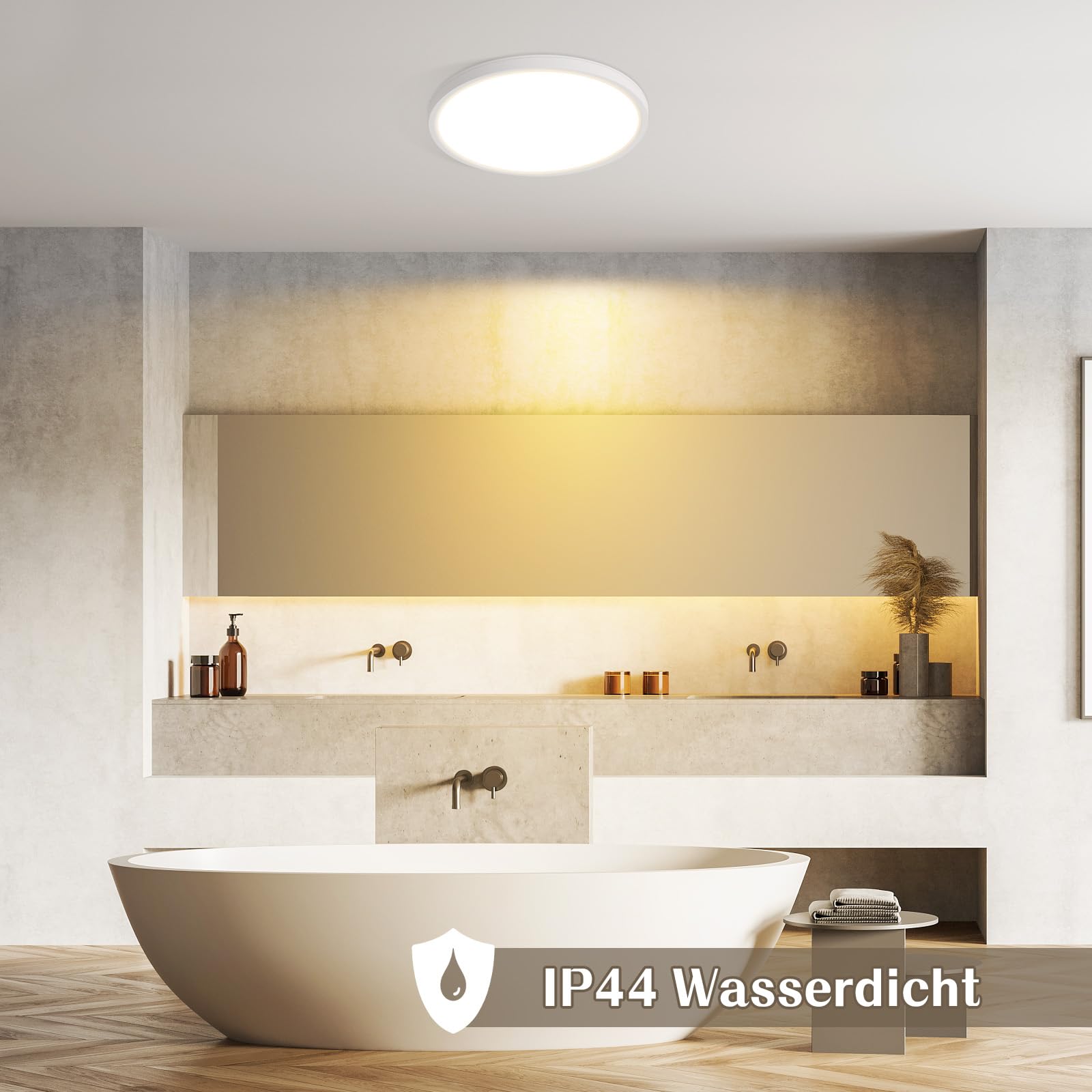 Deckenlampe LED Deckenleuchte Flach - Ø18cm Badezimmerlampe Badezimmer Dimmbar Rhombenplatte 15W Küchenlampe Rund Schlafzimmerlampe Weiß Badlampe Flurlampe für Bad Küche Flur Schlafzimmer