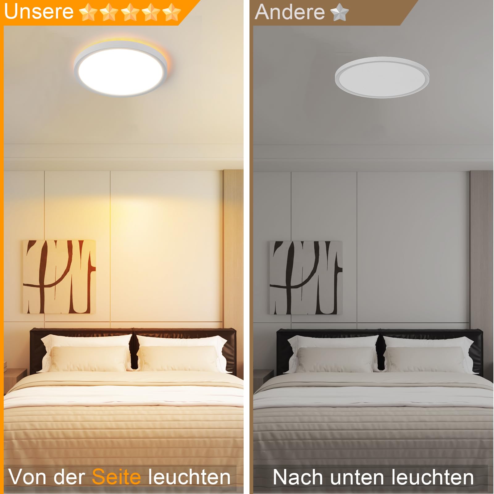 Augenschutz:Die hohe Farbwiedergabeindex (CRI≥80) der Schlafzimmerlampe sorgt für lebendiges und natürliches Licht, das uns ermöglicht, die originalen Farben von Objekten genau wahrzunehmen. Der Lampenschirm ist halbtransparent, was eine gleichmäßige und weiche Beleuchtung ohne Blendung oder Flackern ermöglicht. Dadurch wird die Augenbelastung effektiv reduziert und geschützt.
