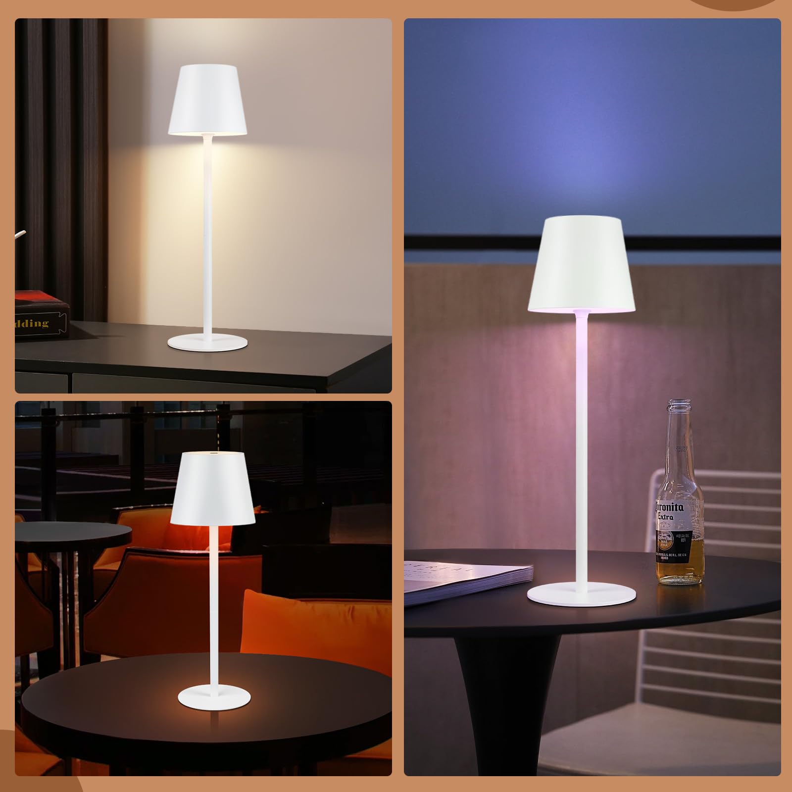 Wireless Rechargeable LED Table Lamp - Outdoor RGB Touch Dimming IP54 Bedside Desk Lamp USB Rechargeable White/Black for Study Desk Bedroom