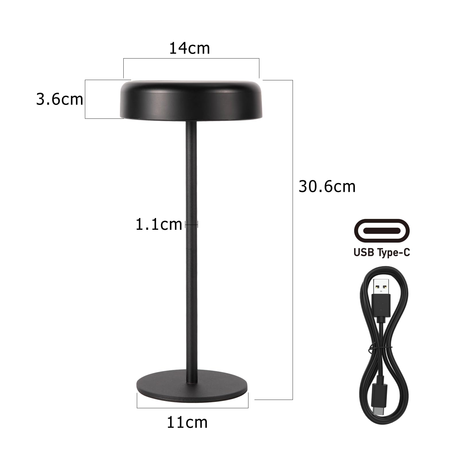 Tischlampe Solar Akku Nachttischlampe - Led Kabellos Tischleuchte 3600mhA Aufladbar Touch Dimmbar Schwarz Lampe mit USB Batterie Solarlampen für Modern Wohnzimmer Schlafzimmer Outdoor