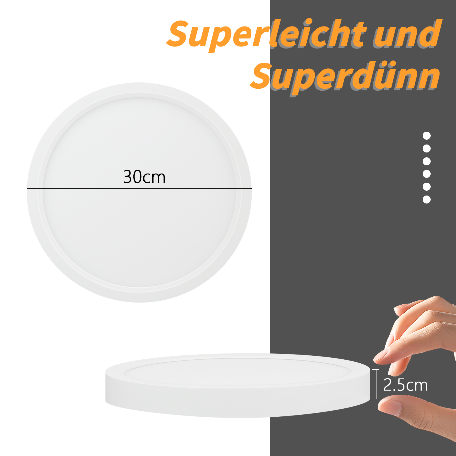 德语标题:Deckenlampe LED Deckenleuchte Badezimmer - 30CM Badezimmerlampe Flach Küchenlampe Weiß Schlafzimmerlampe Rund 18W Schlafzimmer IP44 Deckenbeleuchtung 6000K Flurlampe Decke für Bad Küche Flur