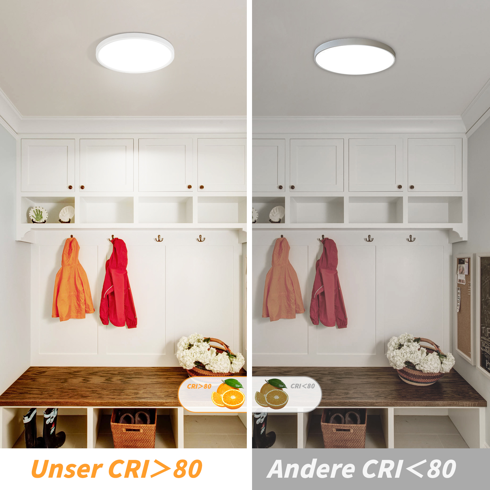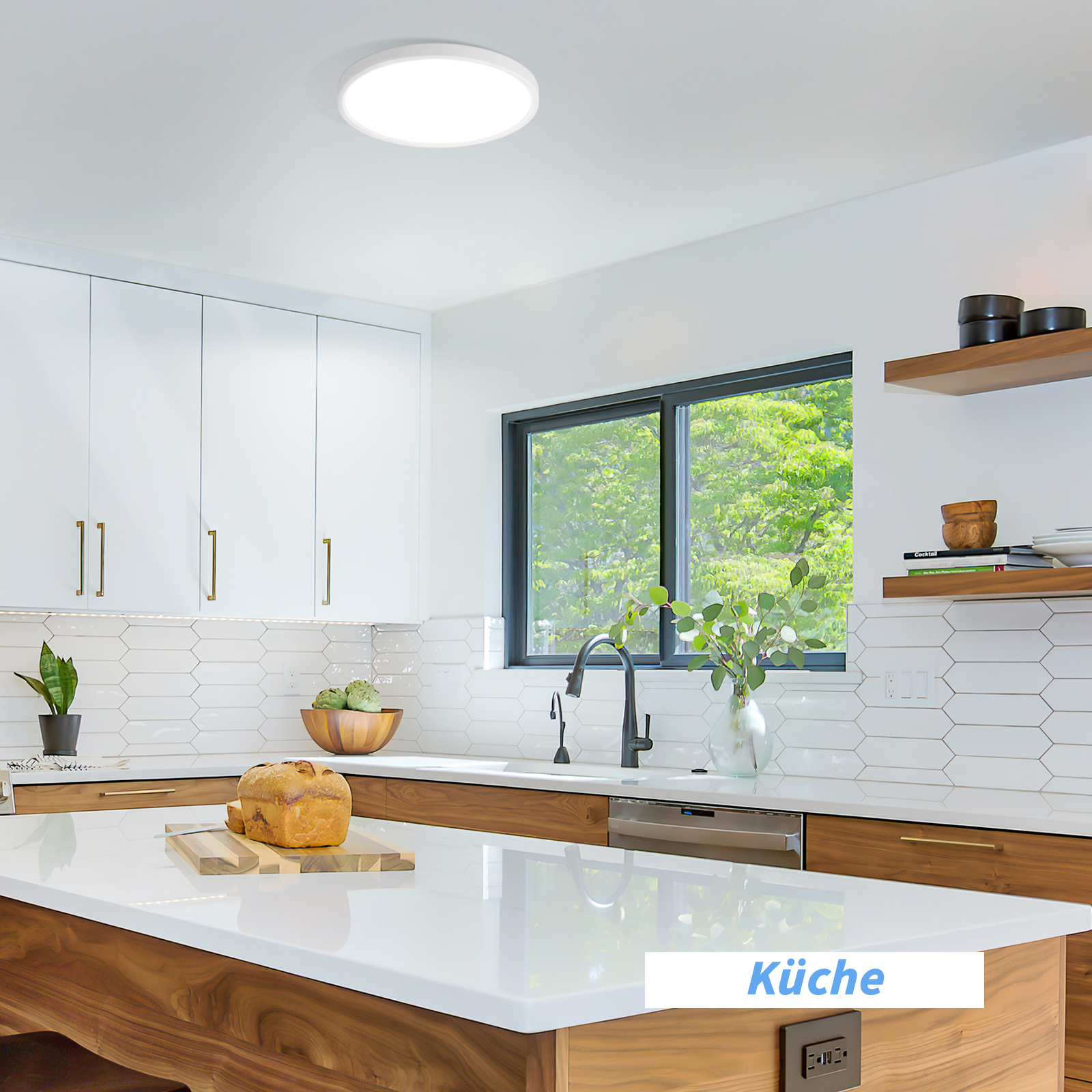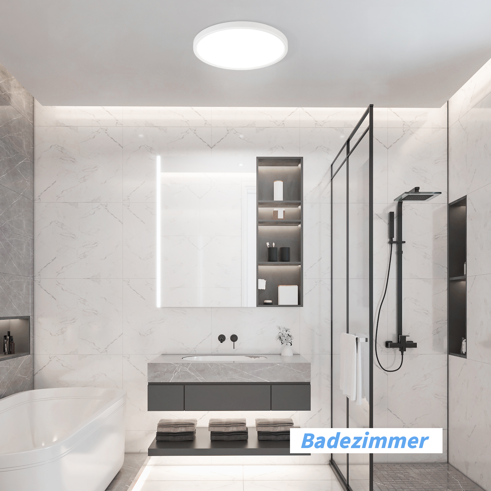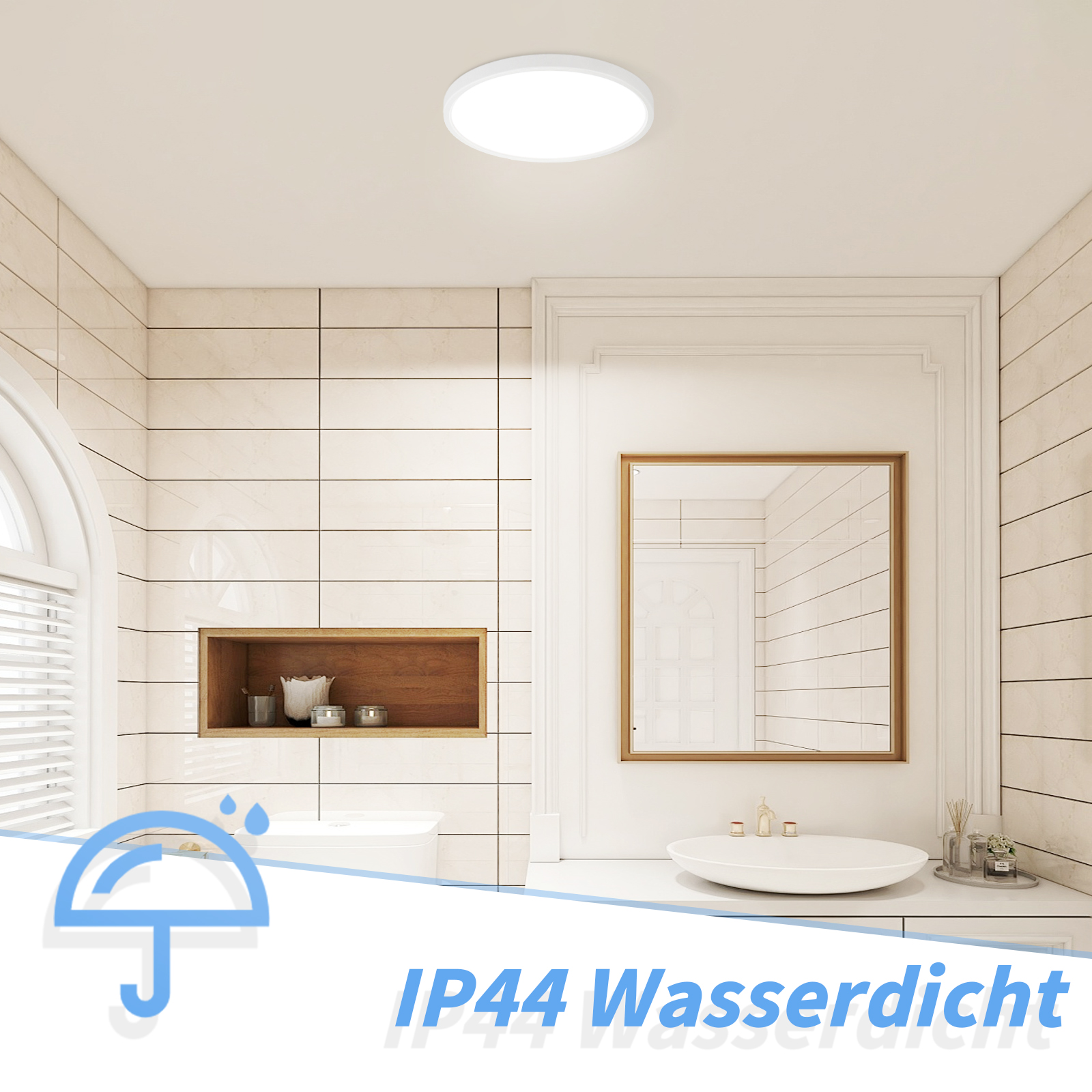 用途广泛:这款 LED 吸顶灯具有 IP44 防溅水认证,非常适合在浴室、阳台和酒窖使用。它能有效防止灰尘和昆虫进入,因此适用于浴室、卧室、走廊、厨房、地下室、办公室等不同空间。