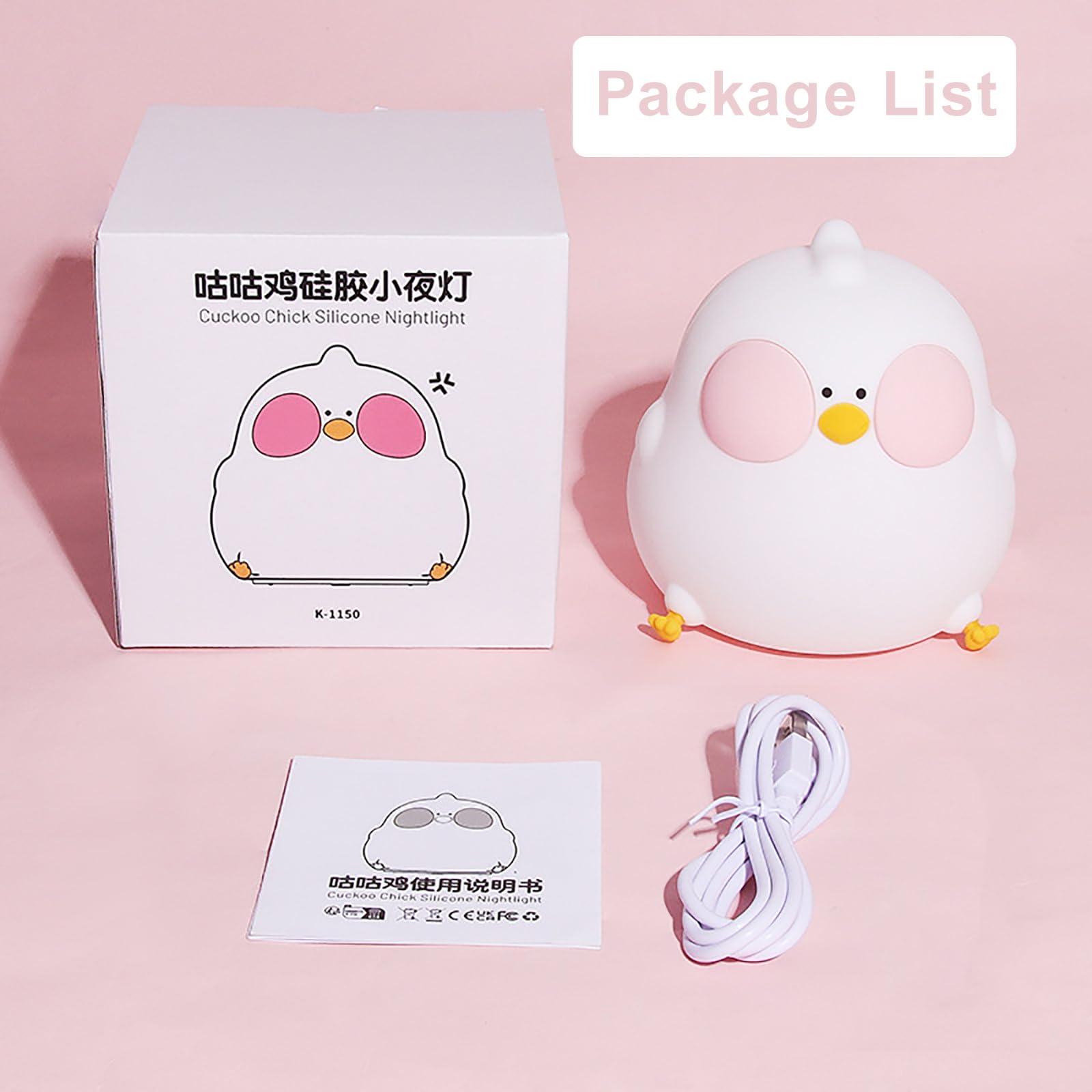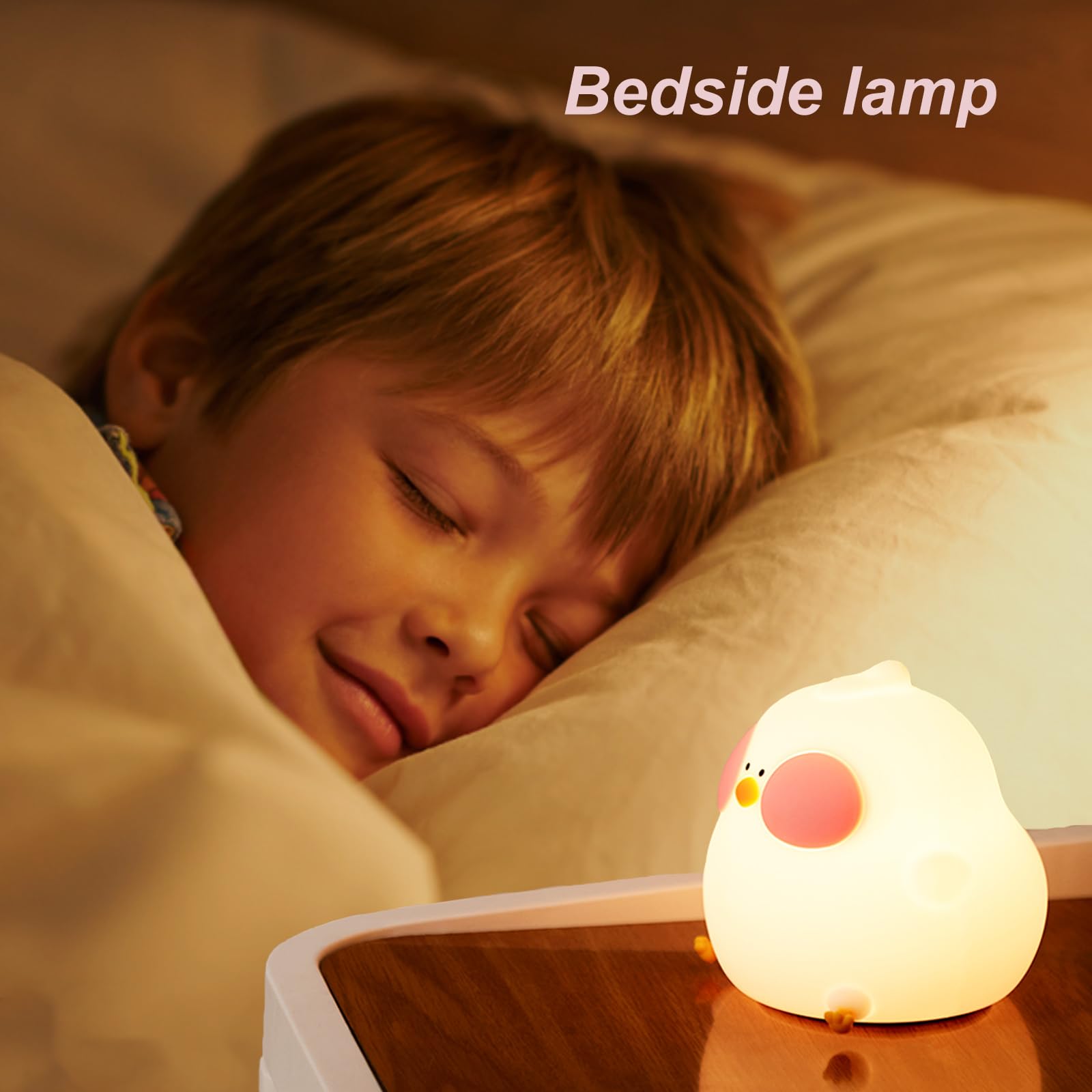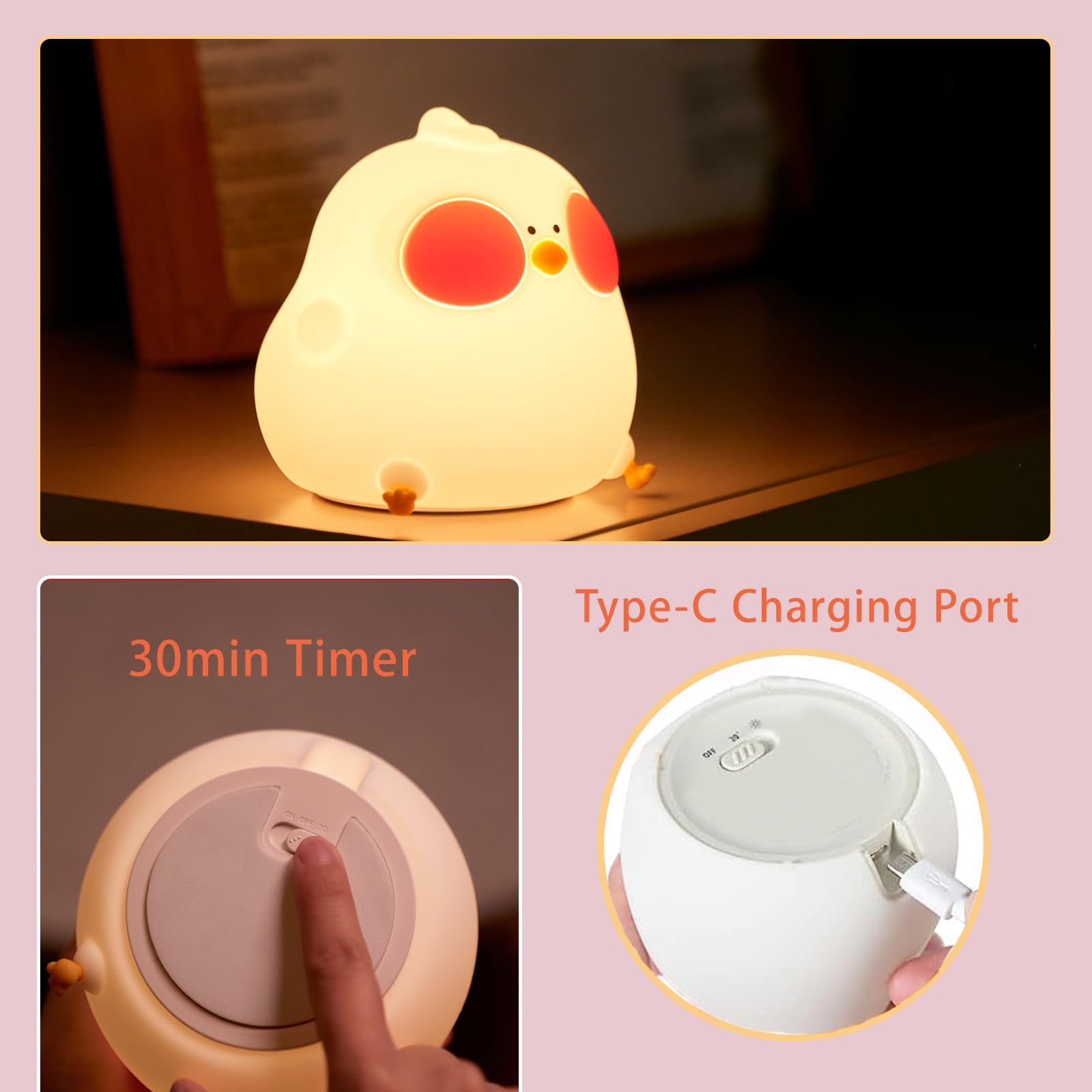 【Cute Chicken Design】Our LED night light for kids features a cute chicken design, perfect for children's rooms and as a children's toy. The soft and non-toxic material is durable and easy to clean. The rounded design with no sharp edges protects your child from injury while playing.