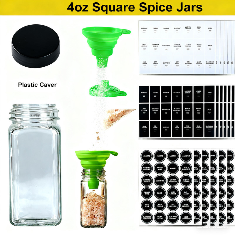 Simple Classic Chinese - style Spice Jars, 12 - piece Set, with Multiple Labels, Meeting Various Storage Needs。
