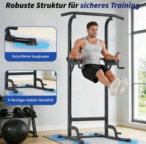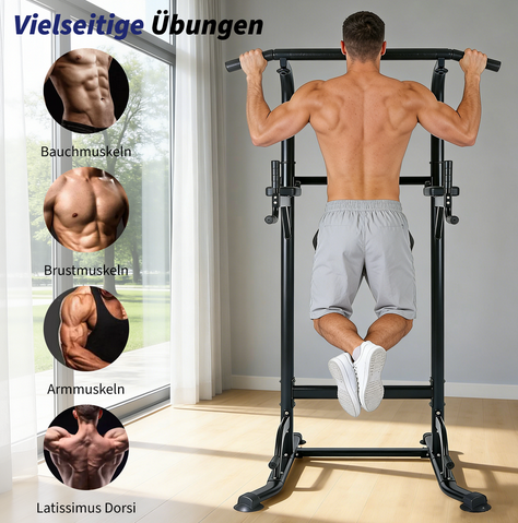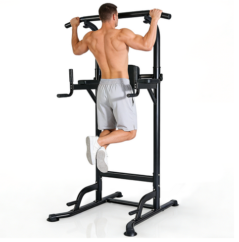Power tower, dip station, pull-up bar for strength training equipment in home gym
