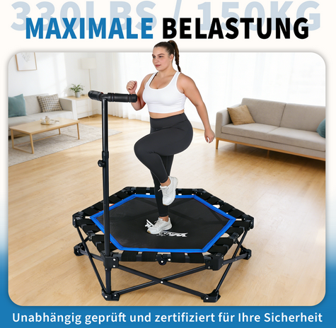 Trampoline foldable, 3 adjustable handle levels, Load capacity 150 KG, More stable and quieter