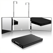 360度旋转镜,三面带挂钩化妆镜,便携式美容镜,高度可调折叠设计,剃须放大镜,适用于理发、剃须、化妆及发型设计